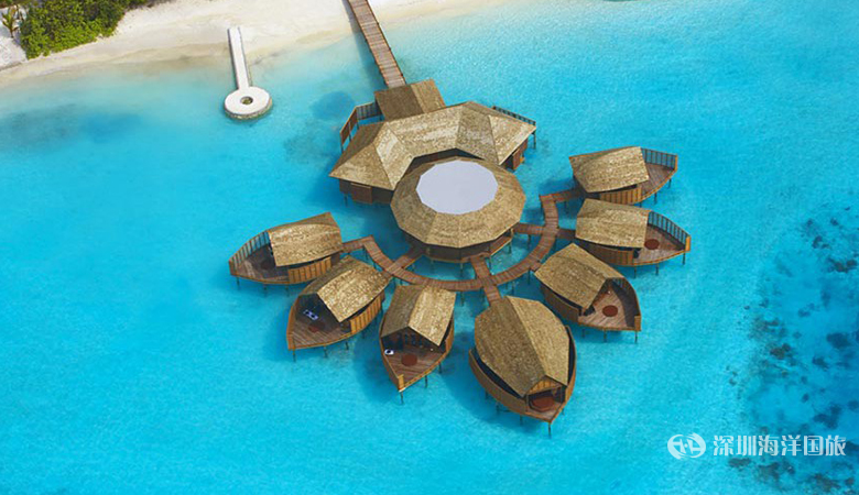 脱颖而出地选择走时尚路线,连多尼摆渡船都设计成现代感的透明体,值得参观,处处都能看到不同寻常的设计,小到一个躺椅、一盏灯,喜欢时尚的人都能在这里会充分享受时尚带来的感官享受。 参考价格:1100美元/天 到达交通:酒店离马累机场约75km,乘坐35分钟水上飞机即可到达。